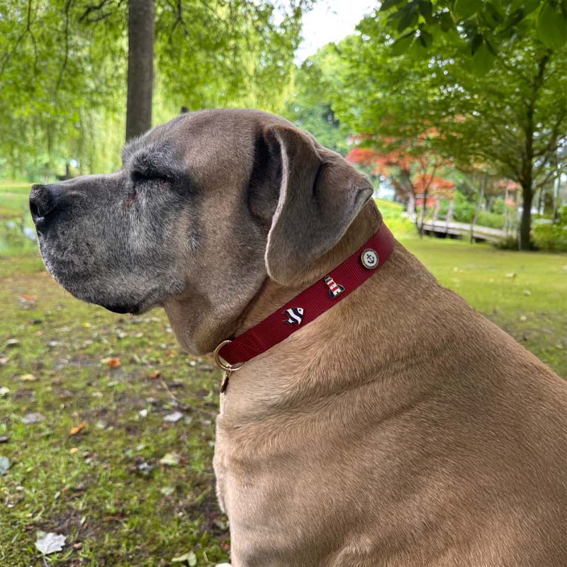 Every Squffy piece is made to reflect your dog’s unique personality. Choose from multiple embroidery fonts and thread colours to make their name truly theirs, or style their collar with themed enamel pins that match their mood, the season, or your adventures together. Whether you prefer something timeless, playful, or bold, every detail is yours to design.