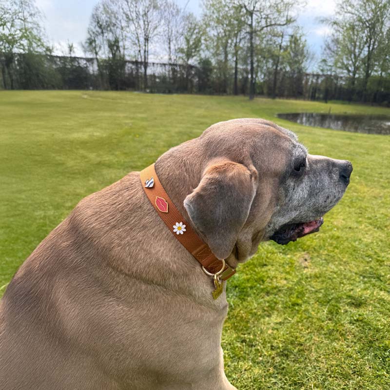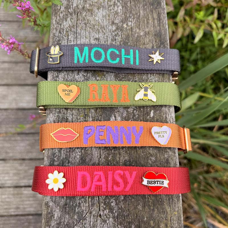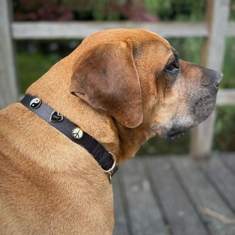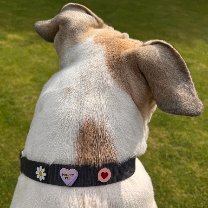 Van speels tot gedurfd, onze hondenpins laten de stijl van je hond stralen. Ze zijn ontworpen om stevig in onze nylon halsbanden te schroeven, zodat ze goed blijven zitten. Hoe wild de zoomies ook worden.
