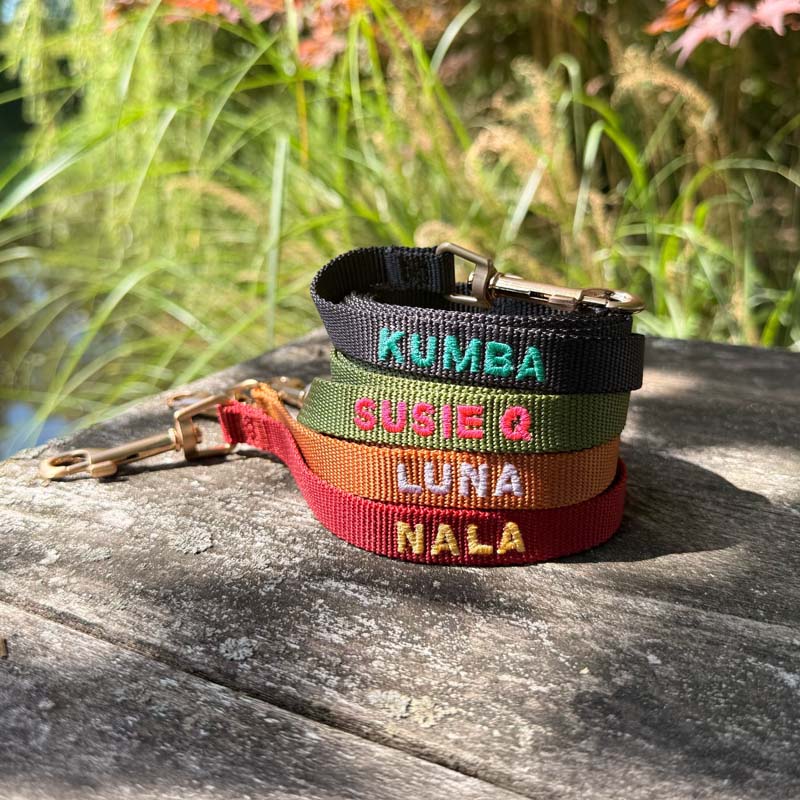 Wij naaien elke halsband op stevig, flexibel nylon, dus het kan gebeuren dat de halsband een klein beetje wiebelt of dat de letters iets scheef staan.