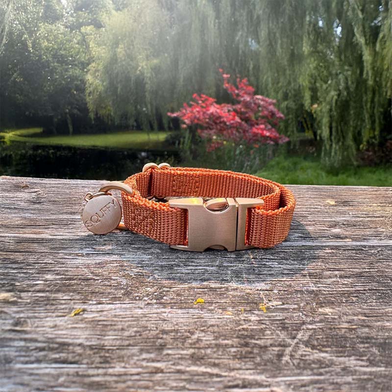 Het maakt strakke, gepolijste afwerkingen mogelijk (zoals goudtinten!), maar blijft roestbestendig en comfortabel voor je hond om te dragen. Het is ook lichter dan staal of messing, waardoor het ideaal is voor dagelijks gebruik.